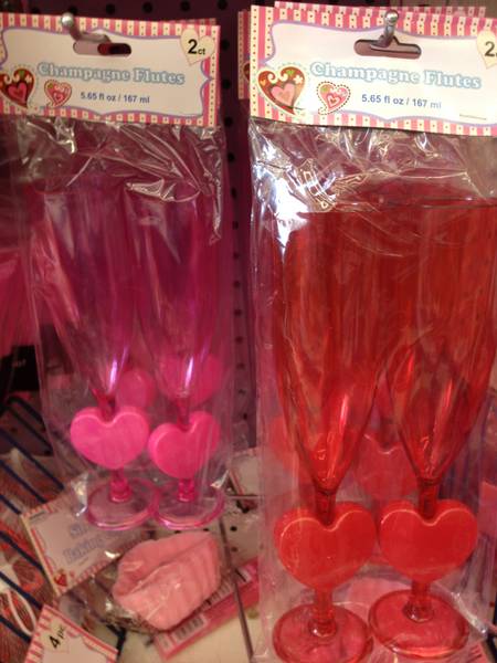 My candies savings this year was ridiculous. Some of this junk food was two for .99! I fell in love with these adorable plastic heart champagne flutes.